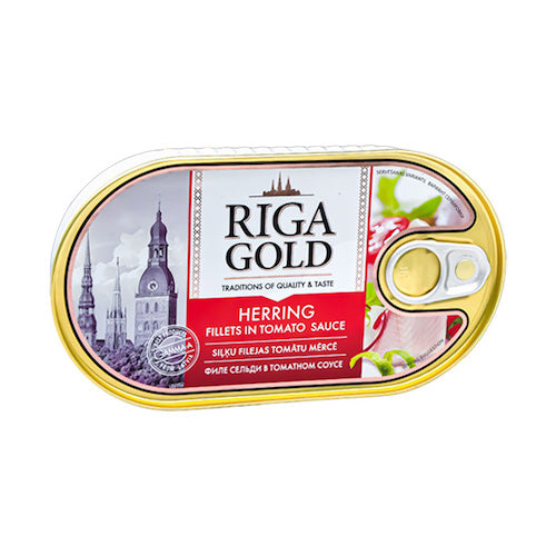 Herring fillet in tomato sauce "Riga Gold" is an exquisite Baltic delicacy that will delight you with its unique taste and aroma. Tender pieces of herring fillet are carefully marinated in tomato sauce, which gives them special juiciness and softness. This product is ideal for making snacks, sandwiches or adding to salads. Herring fillet "Riga Gold" is the choice of those who value the quality and unique taste of the best delicacies.