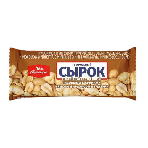 Curd cheese with boiled condensed milk, rice balls, toffee and peanuts in glaze 23% "Svitlogorye" 50g