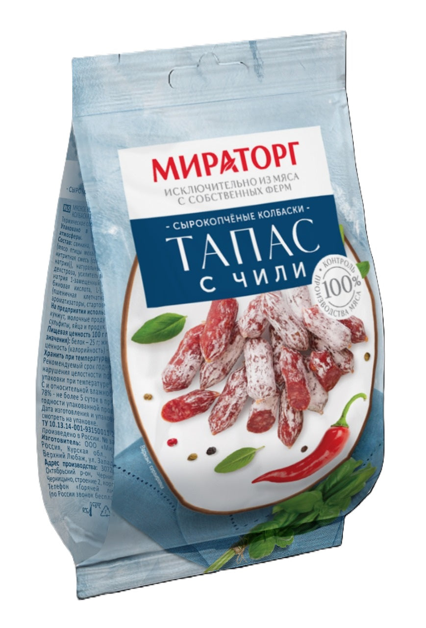 Колбаски сырокопченые полусухие "Тапас с чили". Мираторг 50г