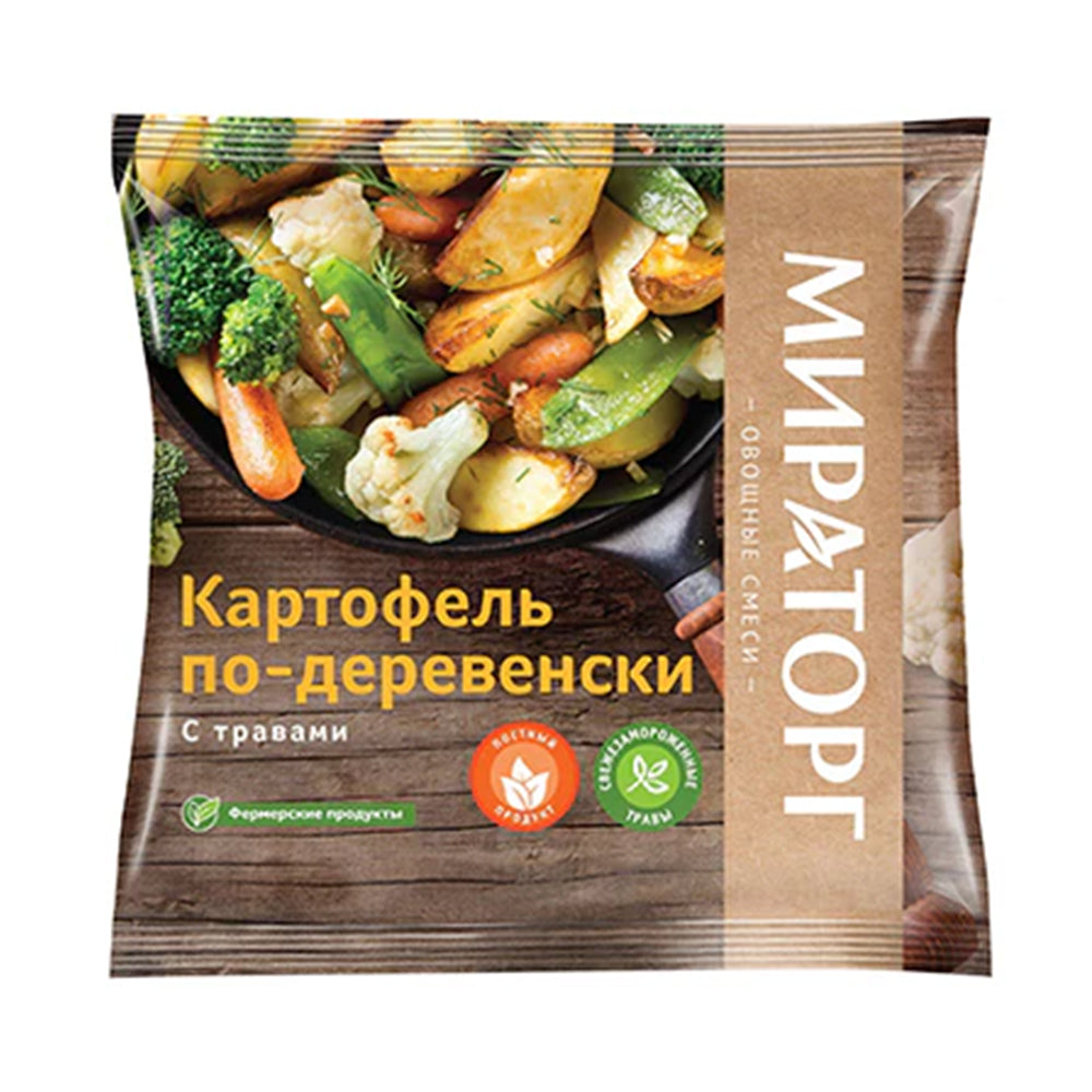 Frozen country-style potatoes with herbs from the Miratorg brand are a convenient and tasty ready-made dish that will be a great addition to any lunch or dinner. The potatoes are cut into pieces and mixed with aromatic herbs, giving them a special taste and aroma. The product is frozen, which allows you to preserve all the beneficial properties and fresh taste of vegetables. Easy to prepare - just heat in the oven or frying pan. Try country-style potatoes with herbs from Miratorg and enjoy the taste of rustic comfort right at home.