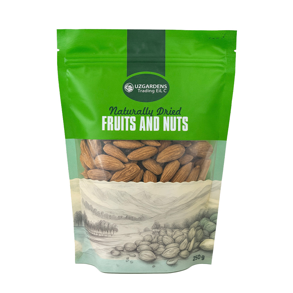 Очищенный миндаль премиум-класса — это натуральный и полезный перекус, тщательно отобранный благодаря насыщенному вкусу и хрустящей текстуре. Миндаль — отличный источник витамина Е, витаминов группы B (B1, B2, B3, B5, B6, фолиевой кислоты) и витамина К, которые поддерживают энергию, здоровье мозга и иммунитет. Он также богат такими незаменимыми минералами, как магний, кальций, фосфор, калий, железо, цинк, медь, марганец и селен, которые способствуют укреплению костей, здоровью сердца и общему тонусу.