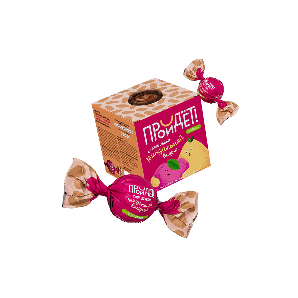 Набор конфет с кремовой начинкой "Пройдёт с кокетством миндальной вишни" без добавления сахара. Пройдет 150 г