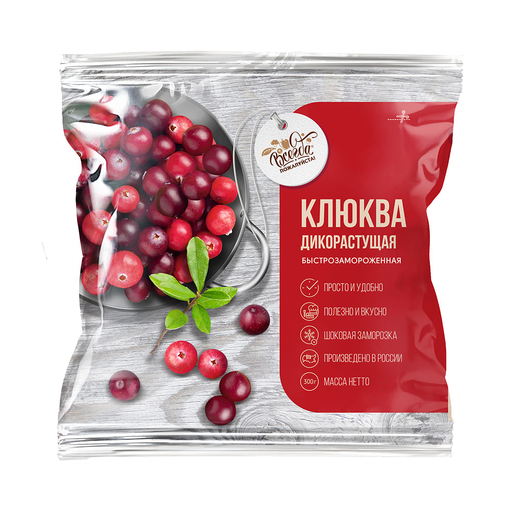 Ягоды дикорастущей клюквы быстрозамороженные без сахара. Всегда пожалуйста 300 г