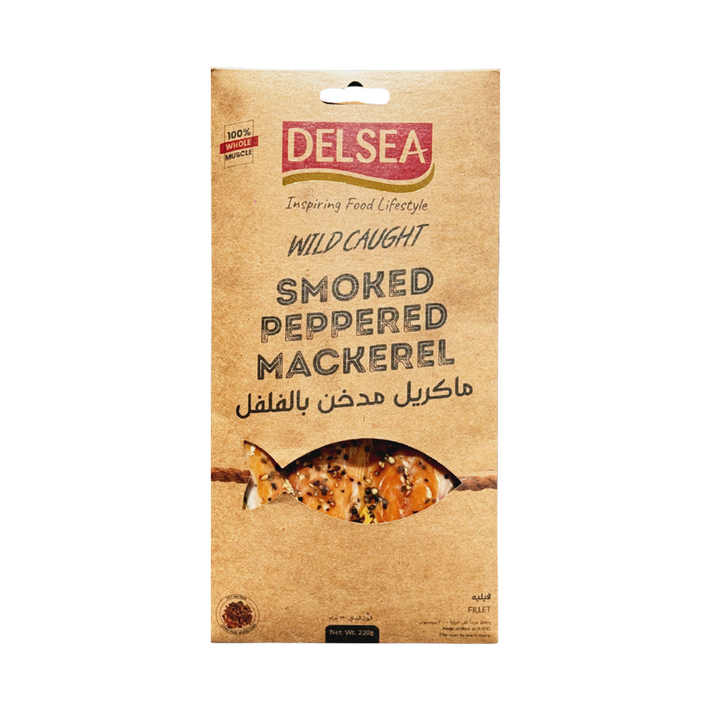 Филе дикой охлаждённой копчёной перченой скумбрии, натурально копчёной на дровах и приправленной чёрным перцем. Готово к употреблению; насыщенный вкус и высокое содержание омега-3.