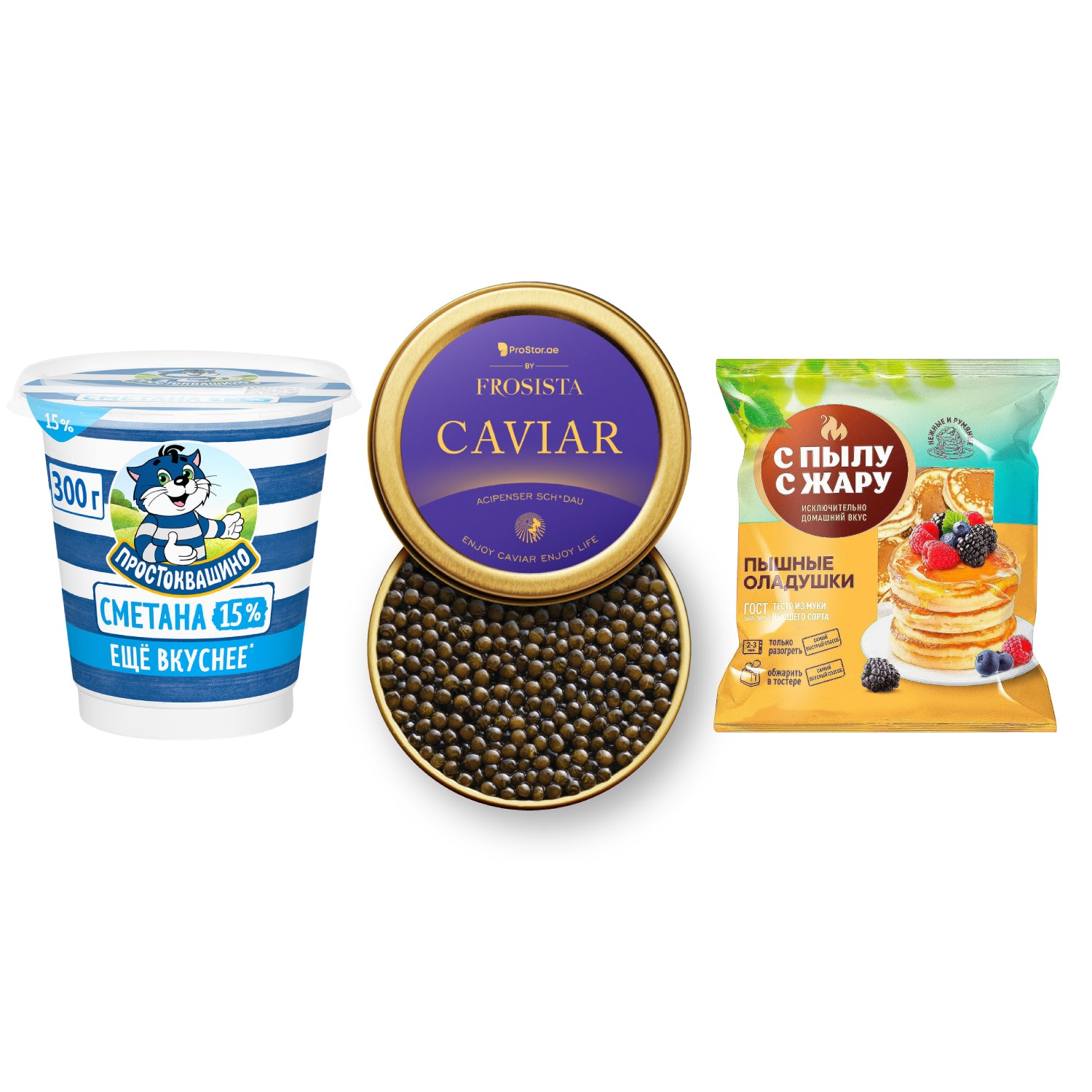 Набор для подачи черной икры Frosista с оладушками и сметаной